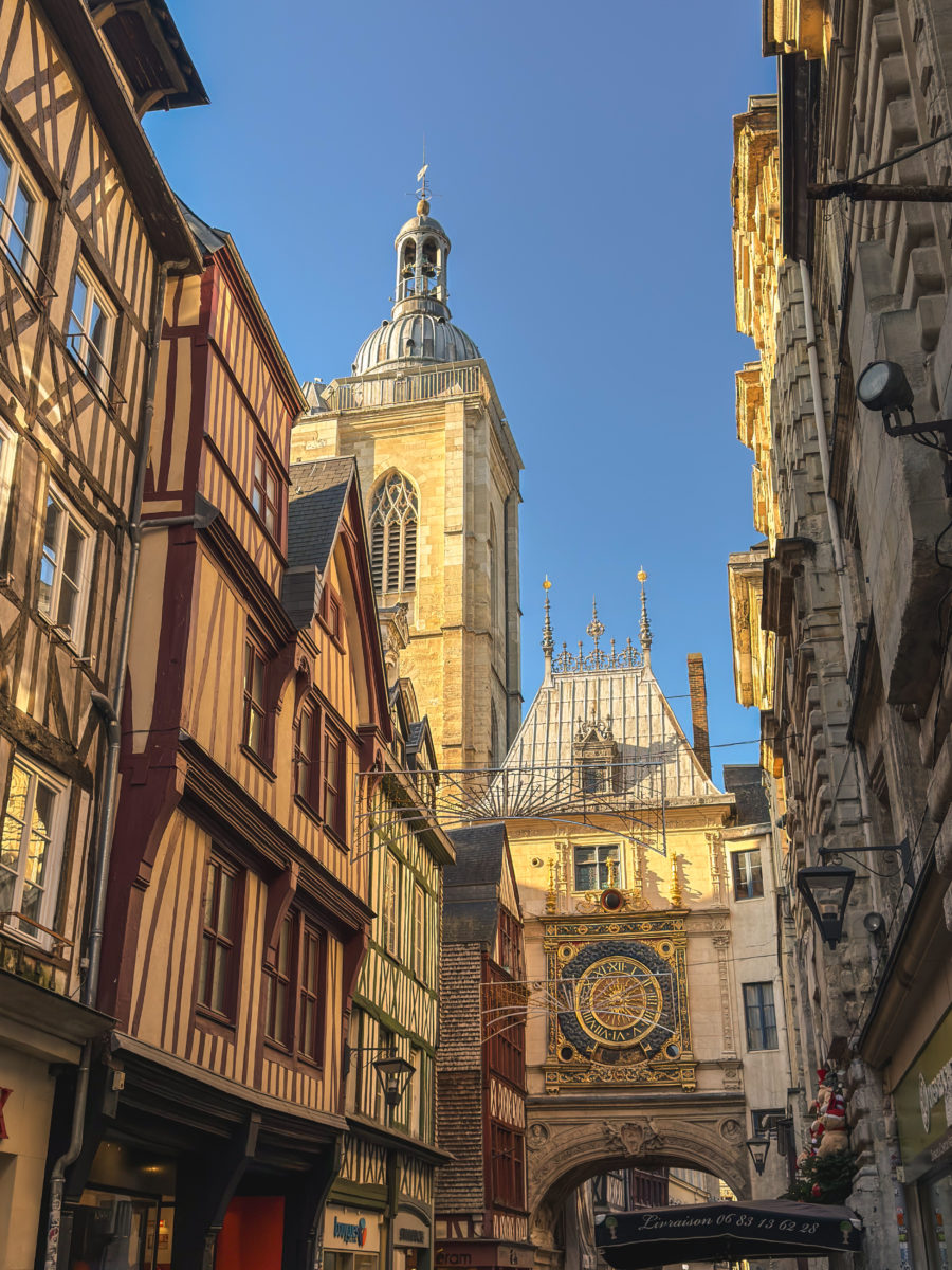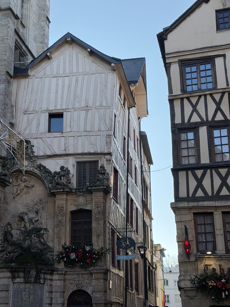 Rouen reveals itself in shadow and light, heavy with history and memory. In its cobbled streets lined with half-timbered houses, the past still murmurs, even amid the songs of the Christmas market. Beneath garlands and the scent of mulled wine, the city retains a gentle gravity, almost solemn. The shadow of Joan of Arc seems to linger over every square and façade. It was here that her fate was sealed, in the flames of history, making Rouen both a place of remembrance and grandeur.