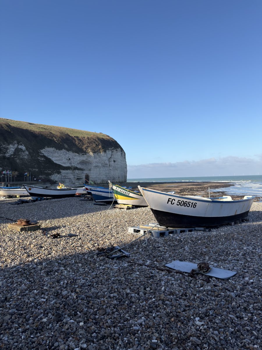 One can already imagine summer, when the famous fries stand opens, drawing hungry strollers and the laughter of children. But for now, off-season, Yport can be experienced slowly, without rush or noise, like a silent interlude nestled between two cliffs, offering a breath of calm at the heart of the Côte d’Albâtre.