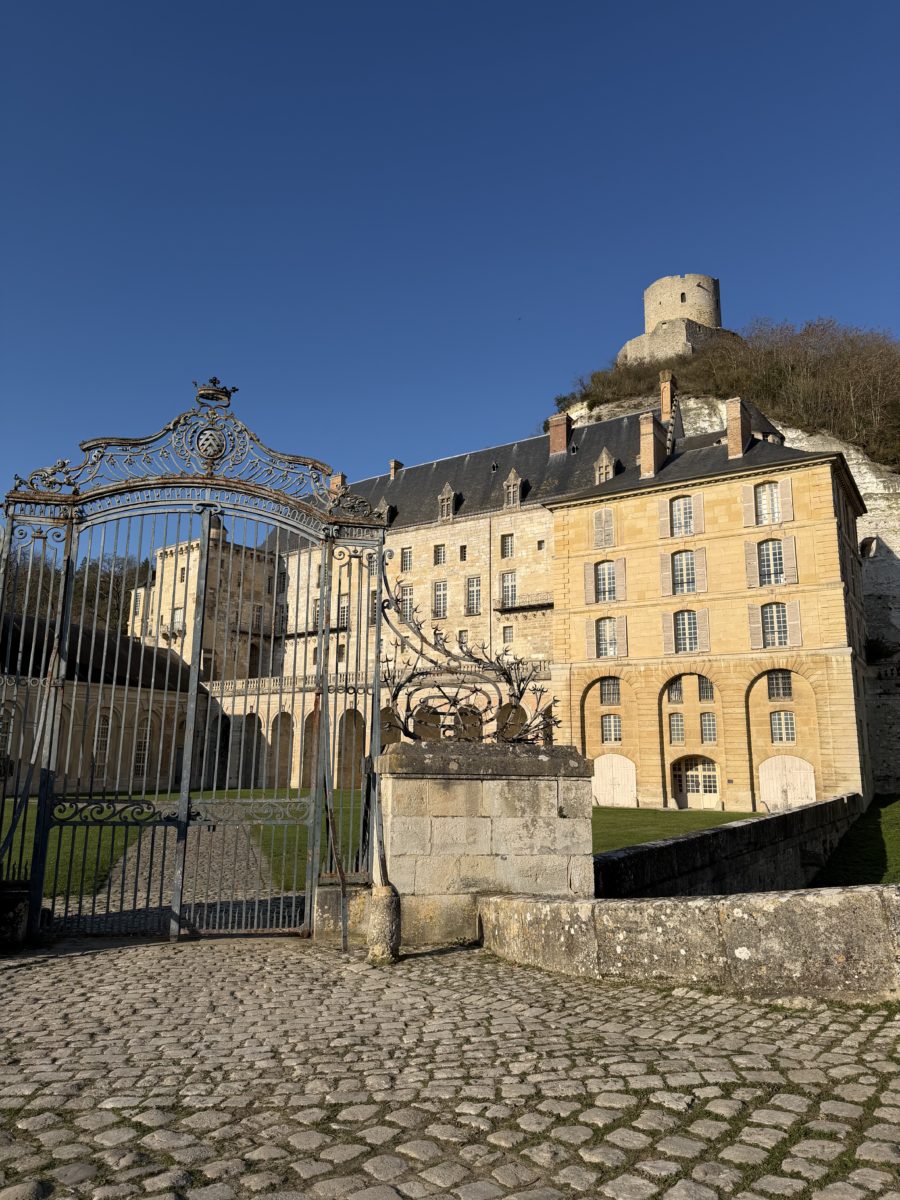 Perchée au-dessus d’un large méandre de la Seine, La Roche-Guyon s’impose comme une sentinelle de pierre. Son château, littéralement creusé dans la roche, domine le village, même s’il nous restera inaccessible, fermé pour l’hiver. C’est aussi ça, voyager entre Noël et le Nouvel An : volets clos, commerces silencieux, rues presque désertes. Mais loin de décevoir, cette quiétude donne au lieu un charme supplémentaire. Avec ses quelques centaines d’habitants, le village semble figé, lové au pied du château, comme si le temps avait décidé de faire une pause.
