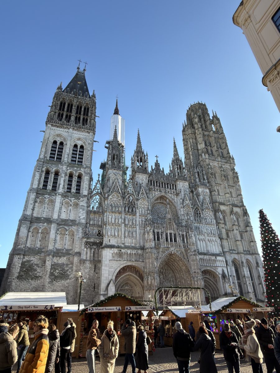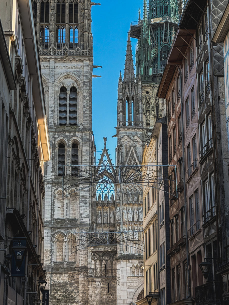 Dominée par la majestueuse cathédrale Notre-Dame, Rouen impose immédiatement sa verticalité. Sa façade de pierre, changeante selon la lumière, nous est étrangement familière : Claude Monet l’a immortalisée dans sa célèbre série des Cathédrales de Rouen, la peignant à différentes heures du jour pour en saisir toutes les variations. La voir en vrai, c’est presque reconnaître un tableau devenu réalité, sentir le lien intime entre la ville et l’histoire de l’art.