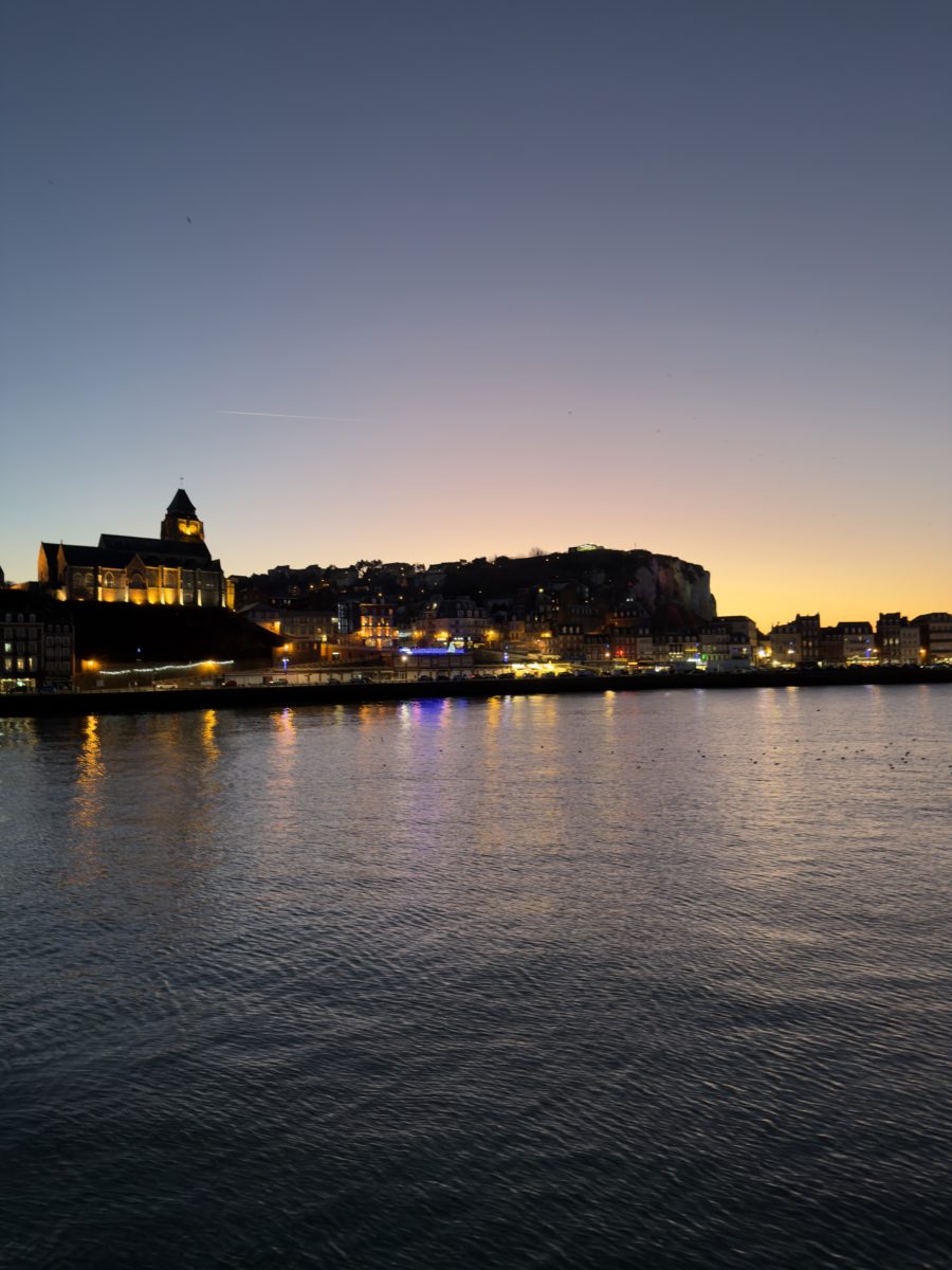 Dans l’obscurité, on devine plus qu’on ne voit. Là-bas, en retrait, les falaises sont présentes sans se dévoiler. Massives, silencieuses, presque intimidantes, elles attendent le jour. Elles ne se montrent pas encore, mais on sent qu’elles sont là, comme une promesse tenue en suspens. Demain, à la première lumière, elles révéleront leurs lignes blanches : là où la Côte d’Albâtre commence réellement à se raconter.