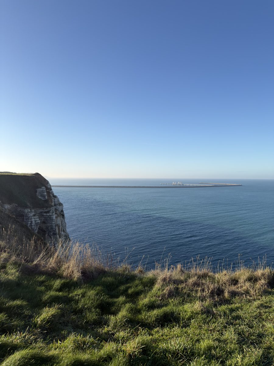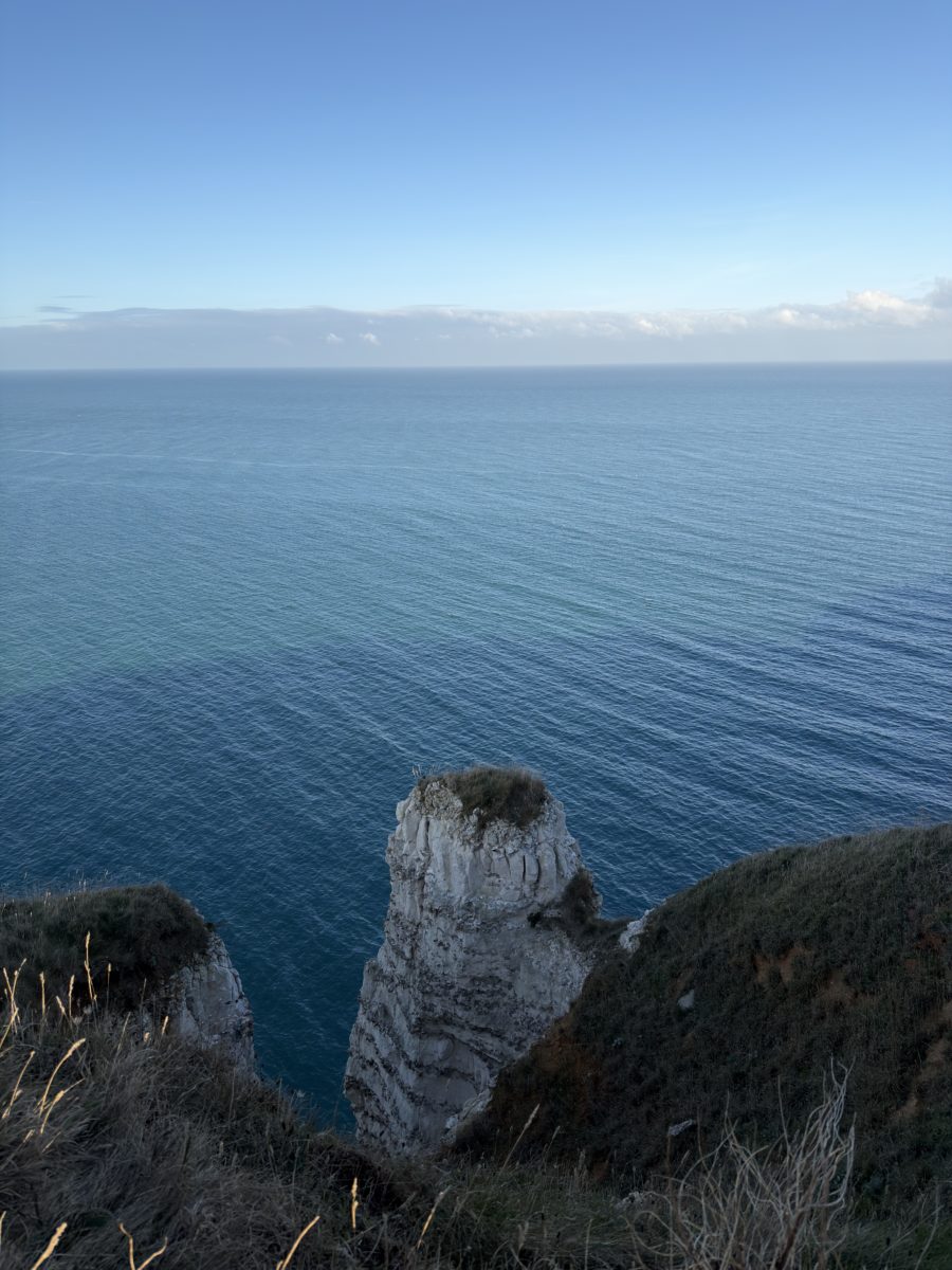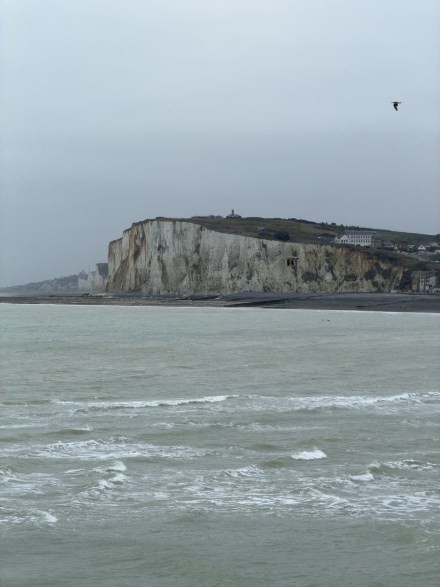 Joli clin d’œil du voyage : le ferry s’appelle Côte d’Albâtre. Il arrive tout droit de Newhaven, à deux pas de Brighton, ma ville favorite anglaise. Difficile de ne pas faire le lien. Face à la Manche, ces falaises normandes me rappellent aussitôt les Seven Sisters. Comme si la côte d’Albâtre répondait, de l’autre côté de l’eau, à ses cousines anglaises. Un même blanc, une même verticalité, une même sensation de bout du monde… simplement séparées par quelques heures de traversée.